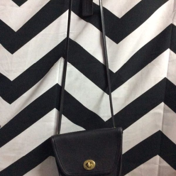 COACH BAG, LEATHER, FLAP CLOSURE WITH TWIST LATCH, BROKEN STRAP, BLACK AS IS
