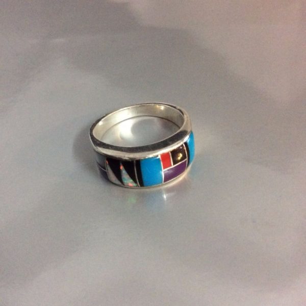 RING – OPAL W/MULTI INLAYED STONES – SIGNED NG