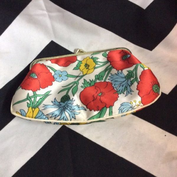 Coin purse, snap closure, poppy floral print design, red/white/yellow/blue/green