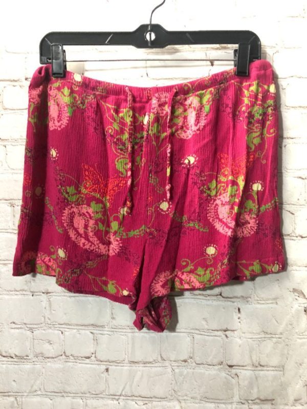 *AS-IS* 1980S TROPICAL HIGH-WAISTED SHORTS ELASTIC WAIST HIBISCUS FLOWER PRINT LIGHTWEIGHT FABRIC