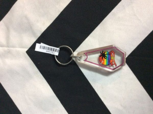 RETRO HAWAII KEYCHAIN W/ RAINBOW SUN & PALM TREE DESIGN
