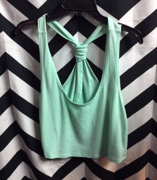 Tank top, cotton, cropped, straps tied in back, seafoam green, size one size fits all