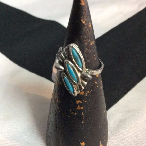 RING – SILVER – 3 FAUX TURQUOISE INSET PIECES