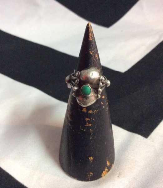 RING – LARGE OVAL TURQUOISE STONE – HEAVY SILVER SETTING – SIGNED S-STAR