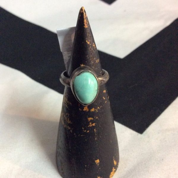 RING – LARGE OVAL TURQUOISE STONE – HEAVY SILVER SETTING – SIGNED S-STAR