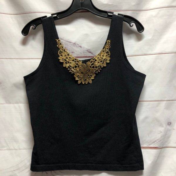 LITTLE STRETCHY CROPPED TOP GOLD APPLIQUE NECKLINE