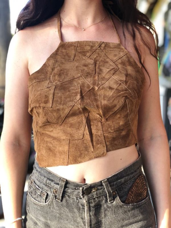 SUEDE HALTER TOP W/ PATCHWORK DESIGN