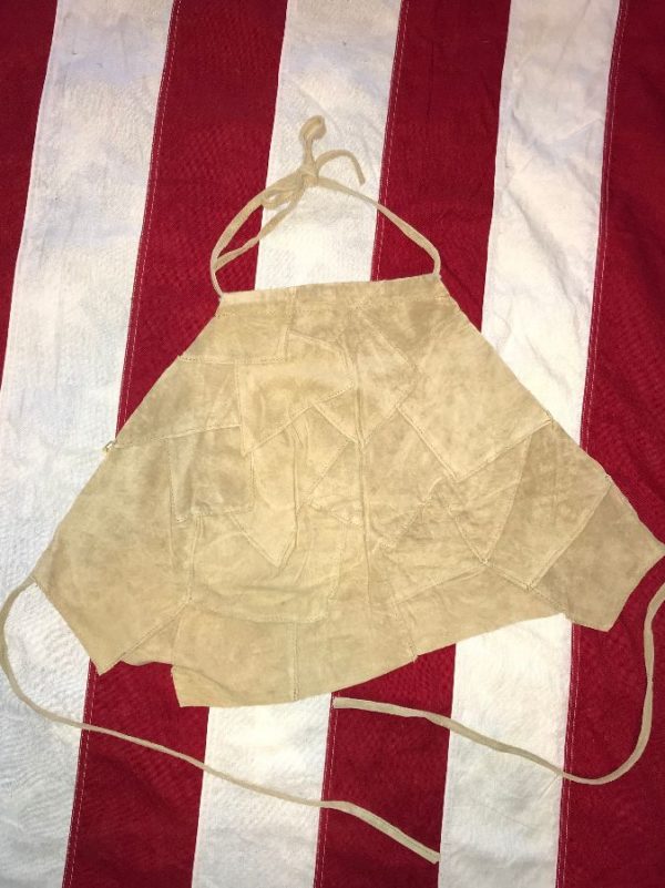 Halter top, suede leather, skinny tie straps, patchwork design, dead-stock, beige, size S