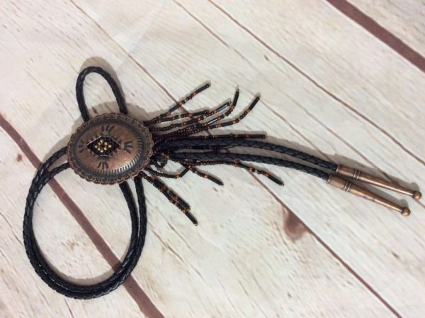 BOLO TIE ARIZONA BRASS CONCHO W/ BEAD FRINGE