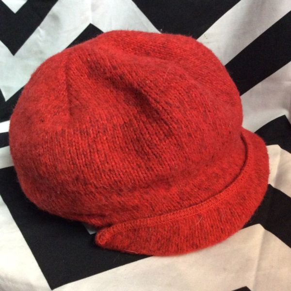 LL Bean beanie, wool blend, knit, small front bill, made in USA, red, size fits all