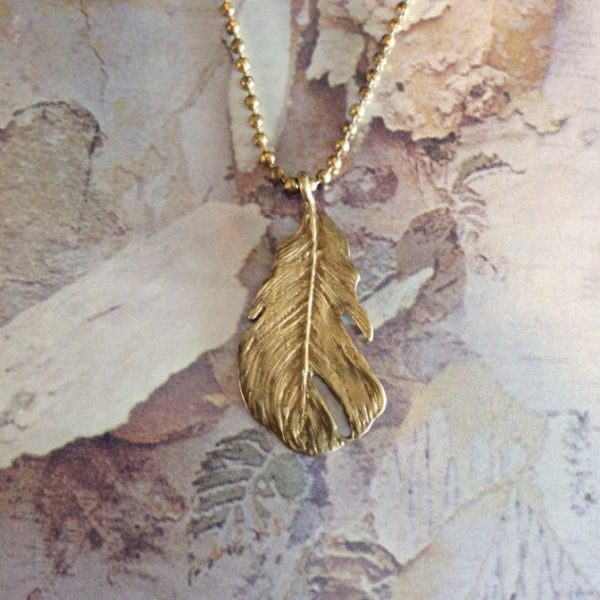 NECKLACE – FEATHER PENDANT – LONG BALL CHAIN