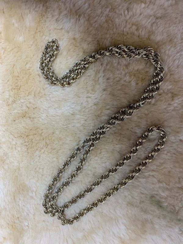 Necklace, long length, thick interlinked double loop chain, gold metal, gold, size one size