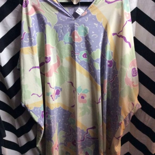 Kaftan/dress, long, pastel colors, floral print, purple/green/pink