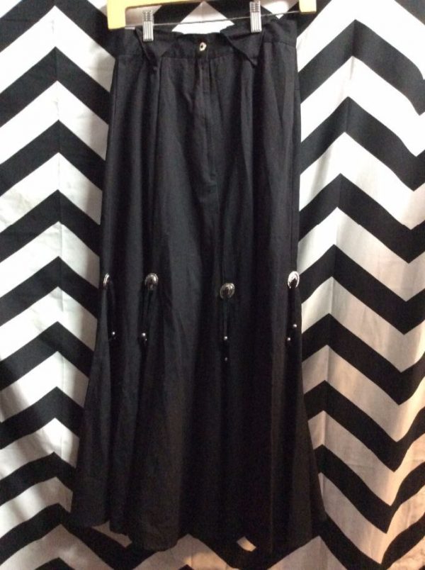 CIRCLE T DENIM SKIRT – TWILL – LONG MAXI – TRIANGLE BELT LOOPS – CONCHOS W/LEATHER STRIPS