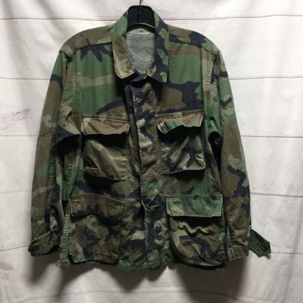 LONG SLEEVE ARMY CAMO PRINT BUTTON UP JACKET THINNER SOFTER SLOUCHY FEEL – AS IS