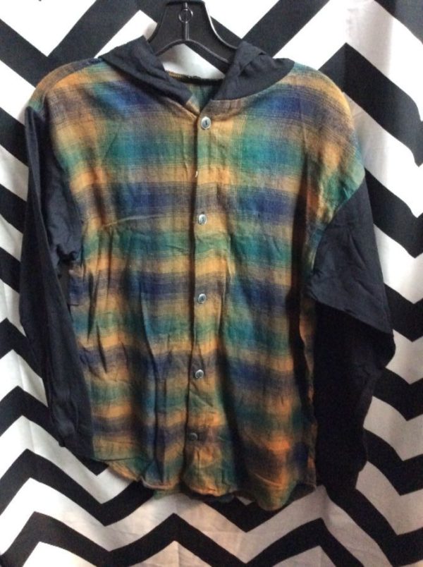 HOODED FLANNEL SHIRT W/ COTTON SLEEVES