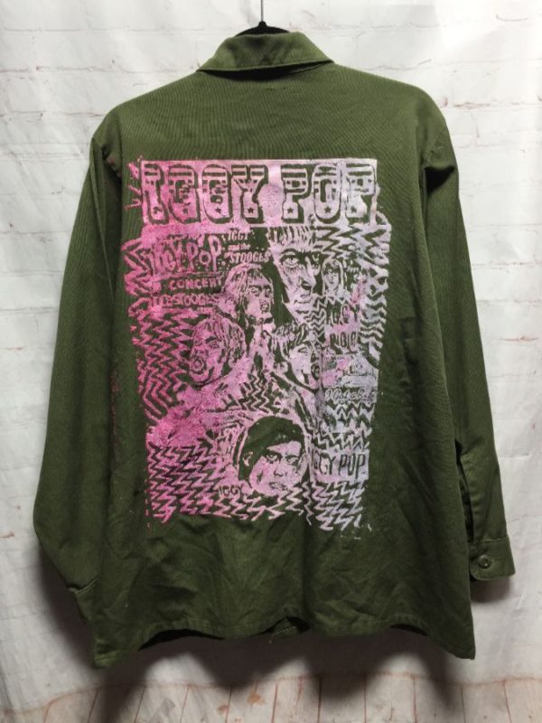 MILITARY SHIRT W/ IGGY POP & THE STOOGES BACK GRAPHIC DESIGN