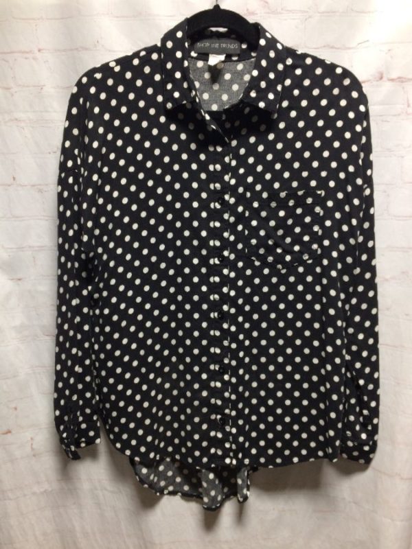 LONG SLEEVE POLKA DOTTED BUTTON UP