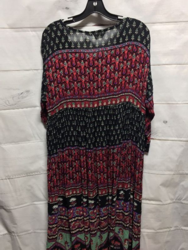 AS IS 1960S BUTTON FRONT 3/4 SLEEVE LOOSE FIT PRINTED MAXI DRESS