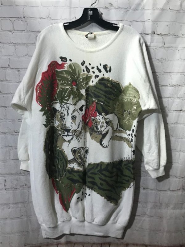 LONG SWEATSHIRT BIG CAT FAMILY PRINT W/ GLITTER