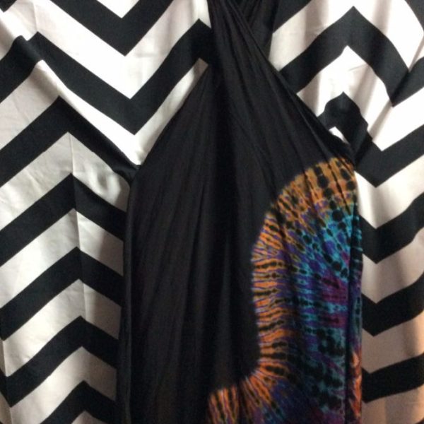 Dress, tank top style, long, tie dyed design, black/purple/orange