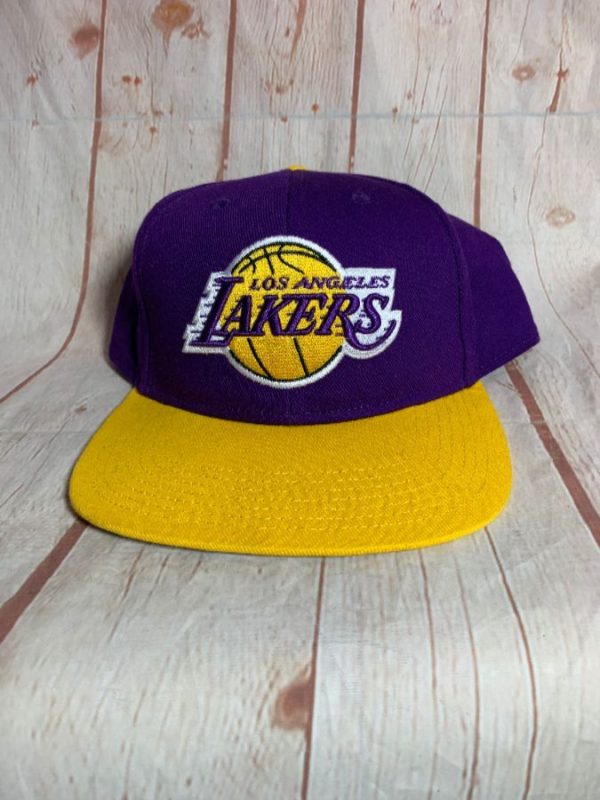 Fan Favorite baseball hat, Los Angeles Lakers, 2 toned, embroidered front logo, adjustable snap back, yellow/white/purple, size adjustable