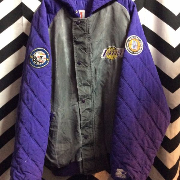 LOS ANGELES LAKERS STARTER CHARCOAL HOODED ARMS PATCHES