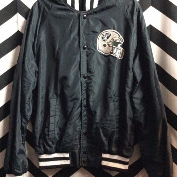 LOS ANGELES RAIDERS FRONT PATCH BUTTON UP BOMBER CUT JACKET