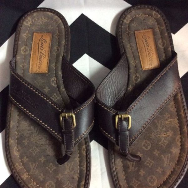 Louis Vuitton sandals, leather, monogramed, brown, size 9 men. AS IS