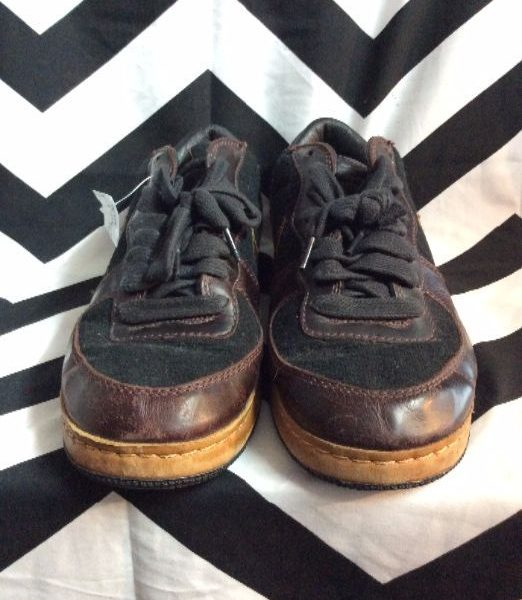 Nike low top sneakers, brushed suede with leather panels, leather around soles, brown/black/tan