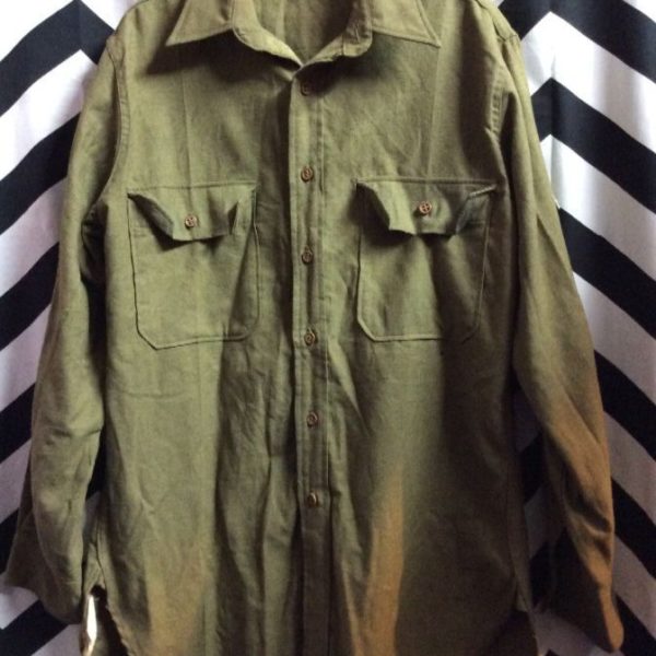 1940’S WOOL MILITARY ISSUED SHIRT W/LEFT ARM PATCHES