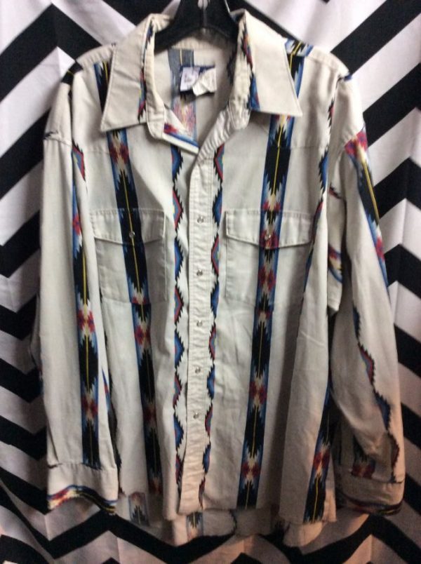 WRANGLER WESTERN SHIRT – LONG SLEEVES – BUTTON-UP – VERTICAL STRIPES W/AZTEC DESIGN