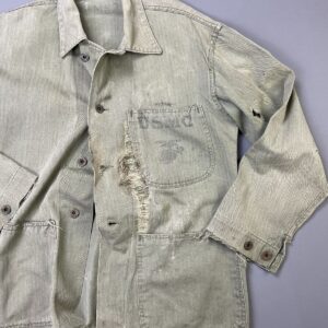 AMAZING & PERFECTLY DISTRESSED 1940S WWII USMC HERRINGBONE LONG SLEEVE BUTTON UP MILITARY SHIRT
