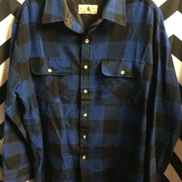 Northwest Territory flannel shirt, long sleeve, button-up, Buffalo check design, blue/black, size L