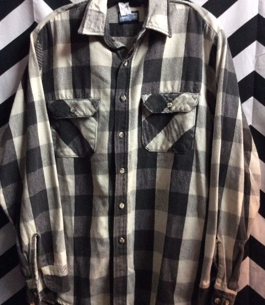 Flannel shirt, long sleeve, button-up, buffalo check print, black/white, size as is