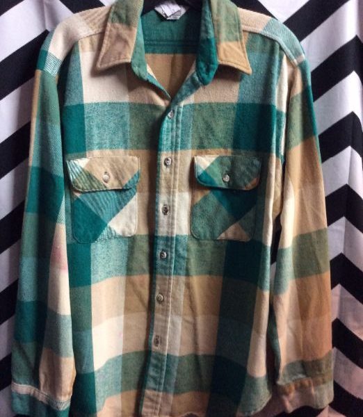 100% WOOL MADE IN USA BUFFALO PLAID FLANNEL SHIRT DOUBLE FRONT POCKET