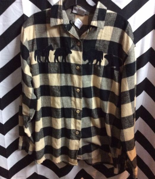 FLANNEL SHIRT W/BUFFALO CHECK & EMBROIDERED ANIMAL DESIGNS
