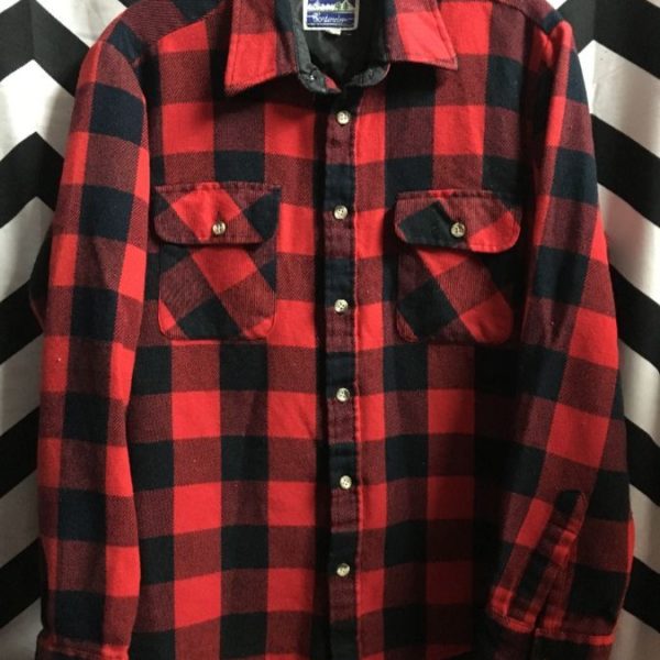 Flannel shirt, long sleeve, button-up, 2 front pockets, Buffalo check design, soft, red/black, size M