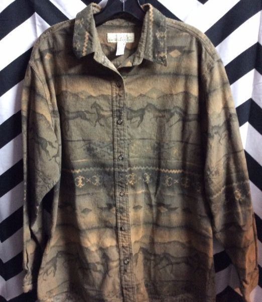 CABELA FLANNEL SHIRT W/HORSES PATTERN