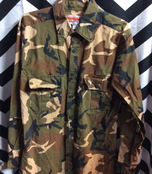 TIGER CAMO MILITARY BUTTON UP JACKET W/ PATCHES
