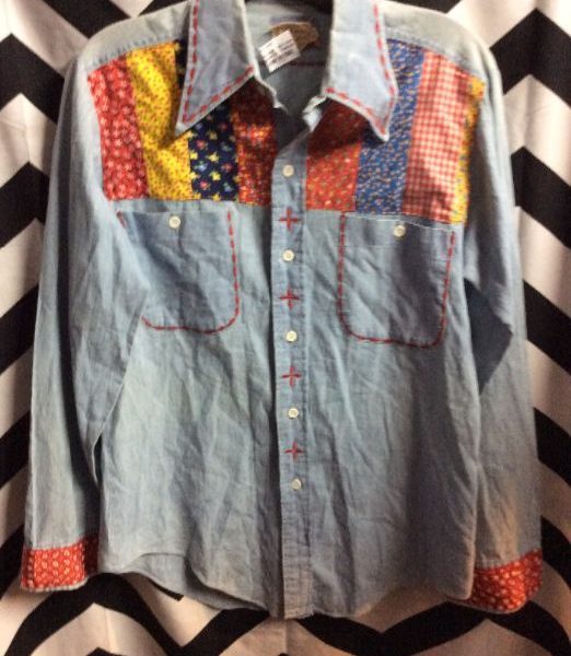 DENIM SHIRT – CHAMBRAY – BANDANA PATCHWORK – DECORATIVE STITCHING