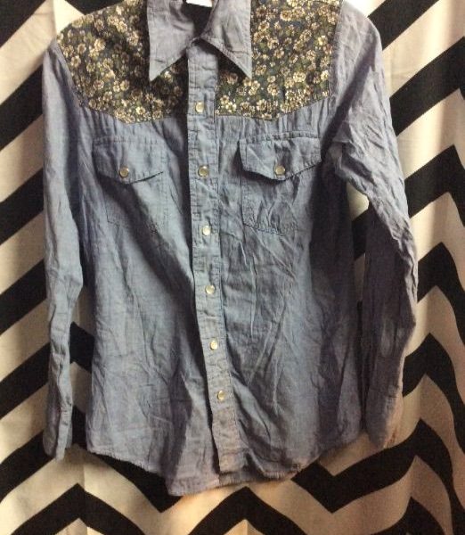 CHAMBRAY DENIM SHIRT W/FLORAL PRINT PANEL