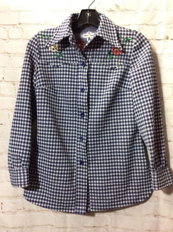 GINGHAM PLAID WESTERN SHIRT W/ EMBROIDERED FLOWERS