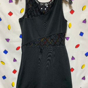 1990S SLEEVELESS MINI DRESS WITH DIAGONAL SHEER CUT-OUT WAIST AND COLLAR WITH DIAMOND PATTERNED SEQUIN DETAIL