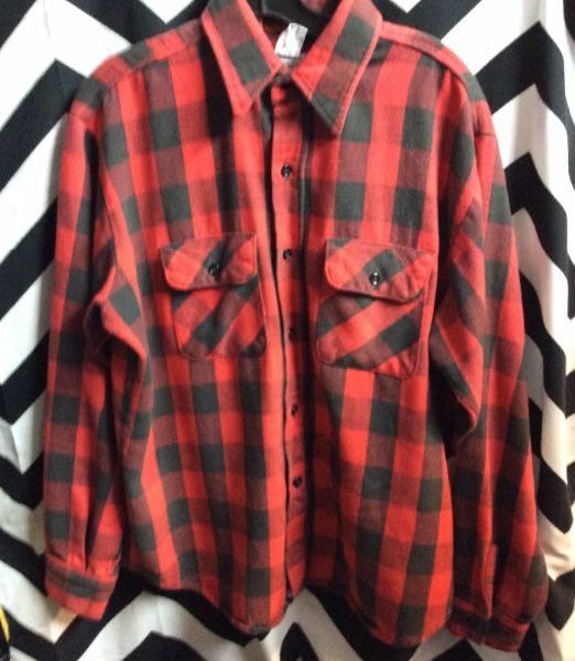 100% WOOL MADE IN USA BUFFALO PLAID FLANNEL SHIRT DOUBLE FRONT POCKET
