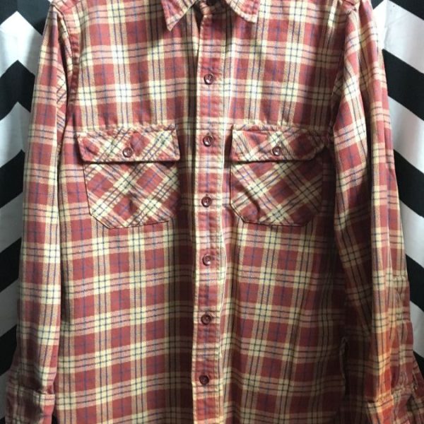 PLAID BUTTON UP FLANNEL COTTON LS SHIRT WITH FRONT BUTTON POCKETS