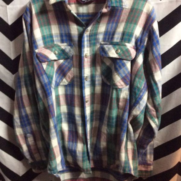 WESTERN FLANNEL SHIRT W/ PEARL SNAPS & PLAID DESIGN