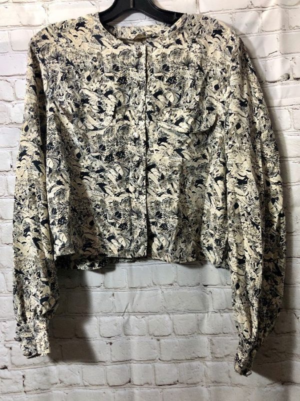 ABSTRACT FLORAL PRINT LONG SLEEVE BUTTON UP W/ ASCOT COLLAR AS-IS