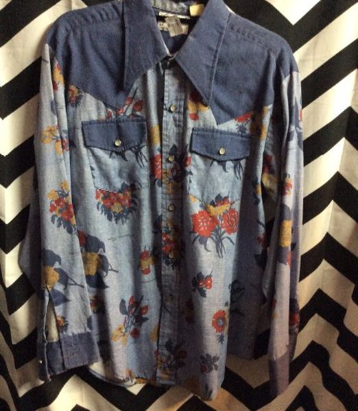 WESTERN SHIRT – W/FLORAL PRINT DESIGN – PEARL SNAP BUTTONS