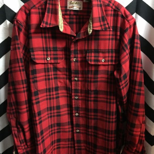 CABELA’S HEAVY PLAID SHIRT W/CORDUROY INSIDE NECK TRIM